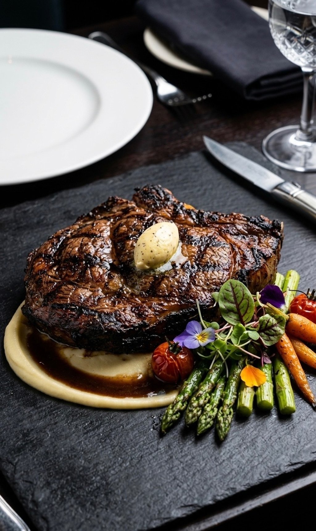 • PLATE with a base of purée, the rested steak, and a generous drizzle of the rich truffle reduction.