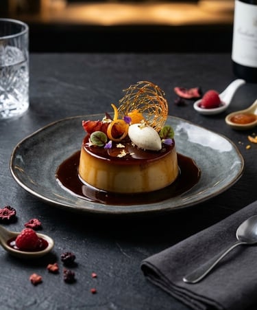 ARTISANAL MILK FLAN, a silky, delicate custard prepared with high-quality cream and vanilla bean, perfectly molded to create a smooth, creamy texture!
